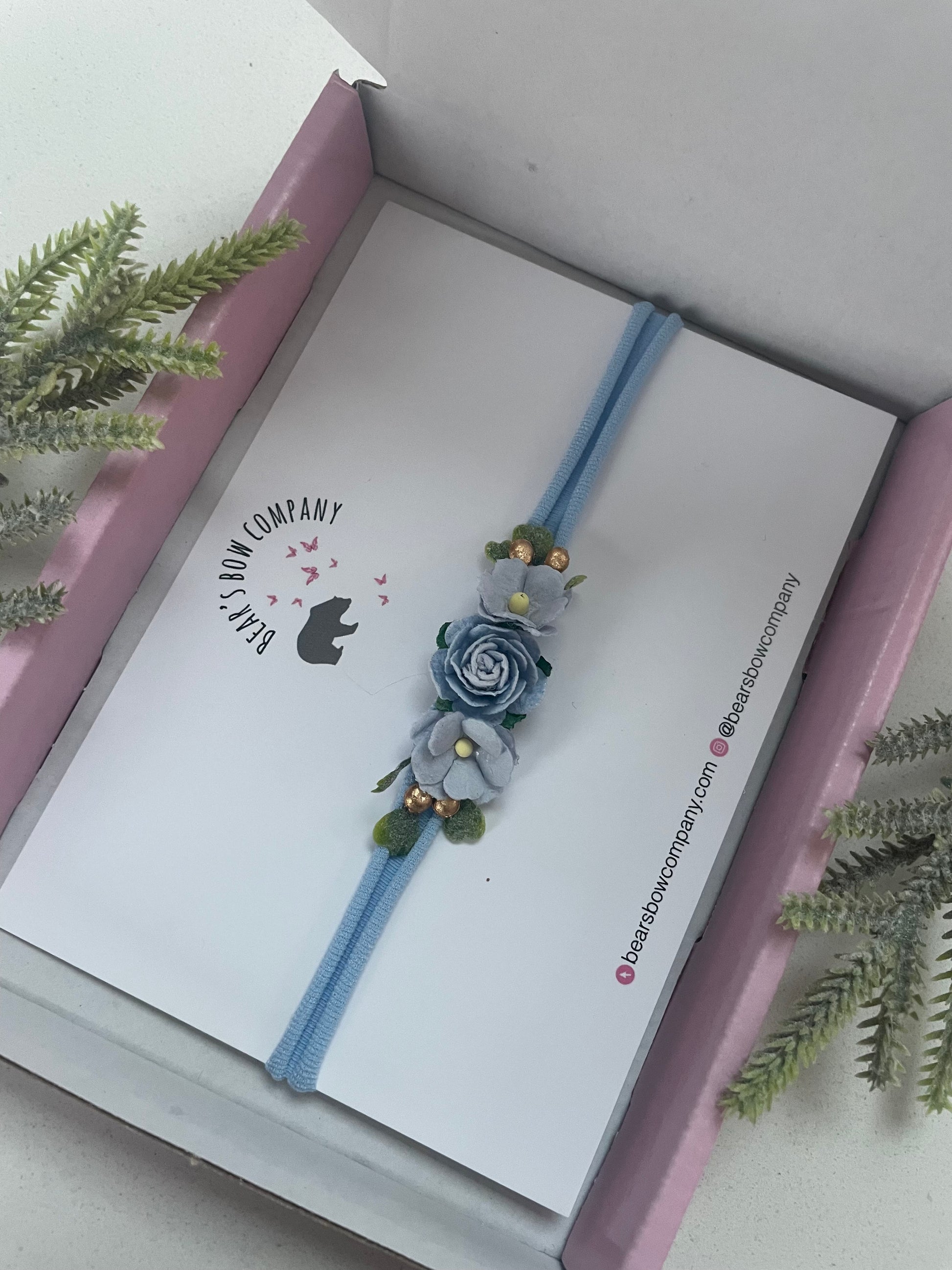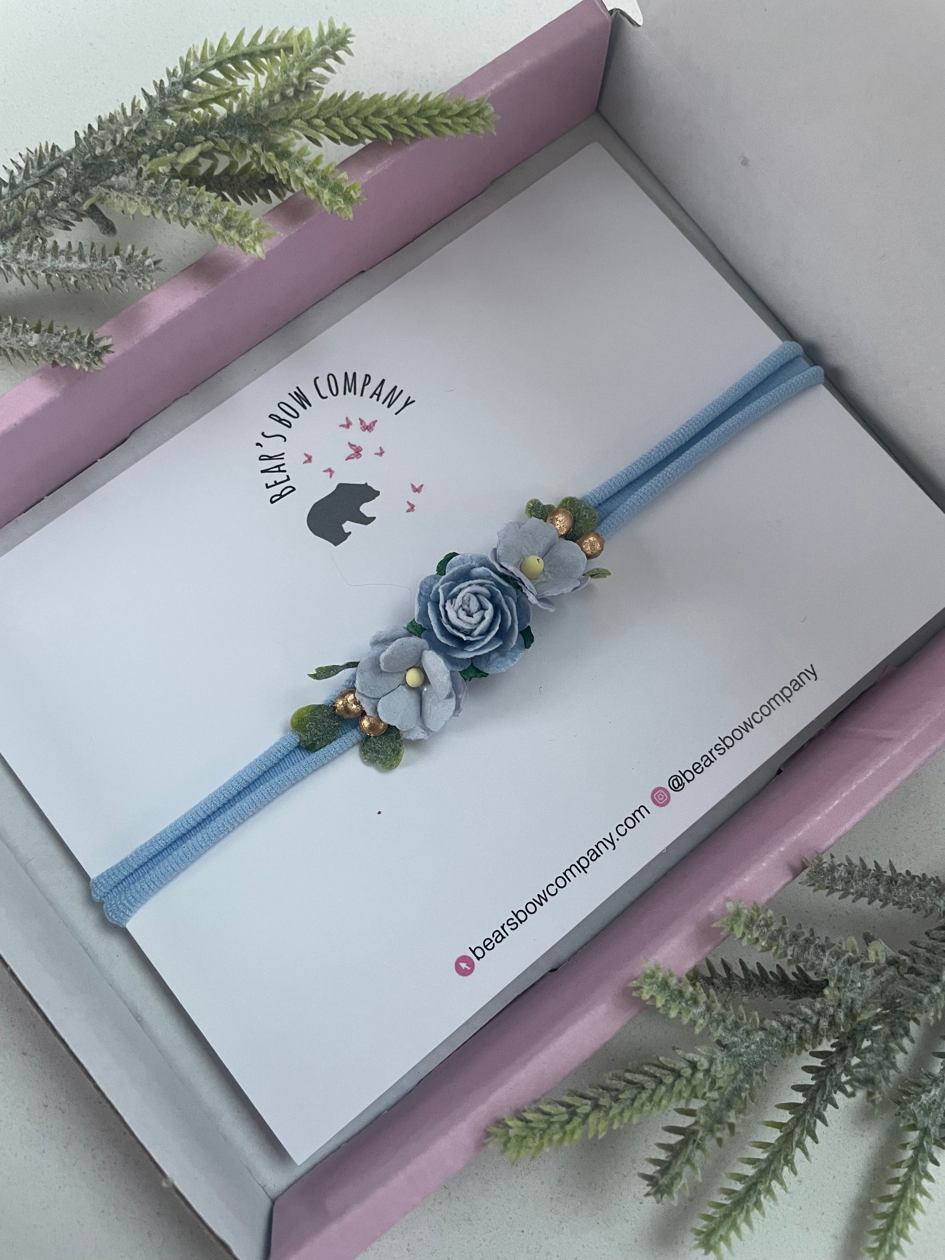 Baby Blue and Silver Blue Flower Headband, For Photoshoots, Weddings, Parties