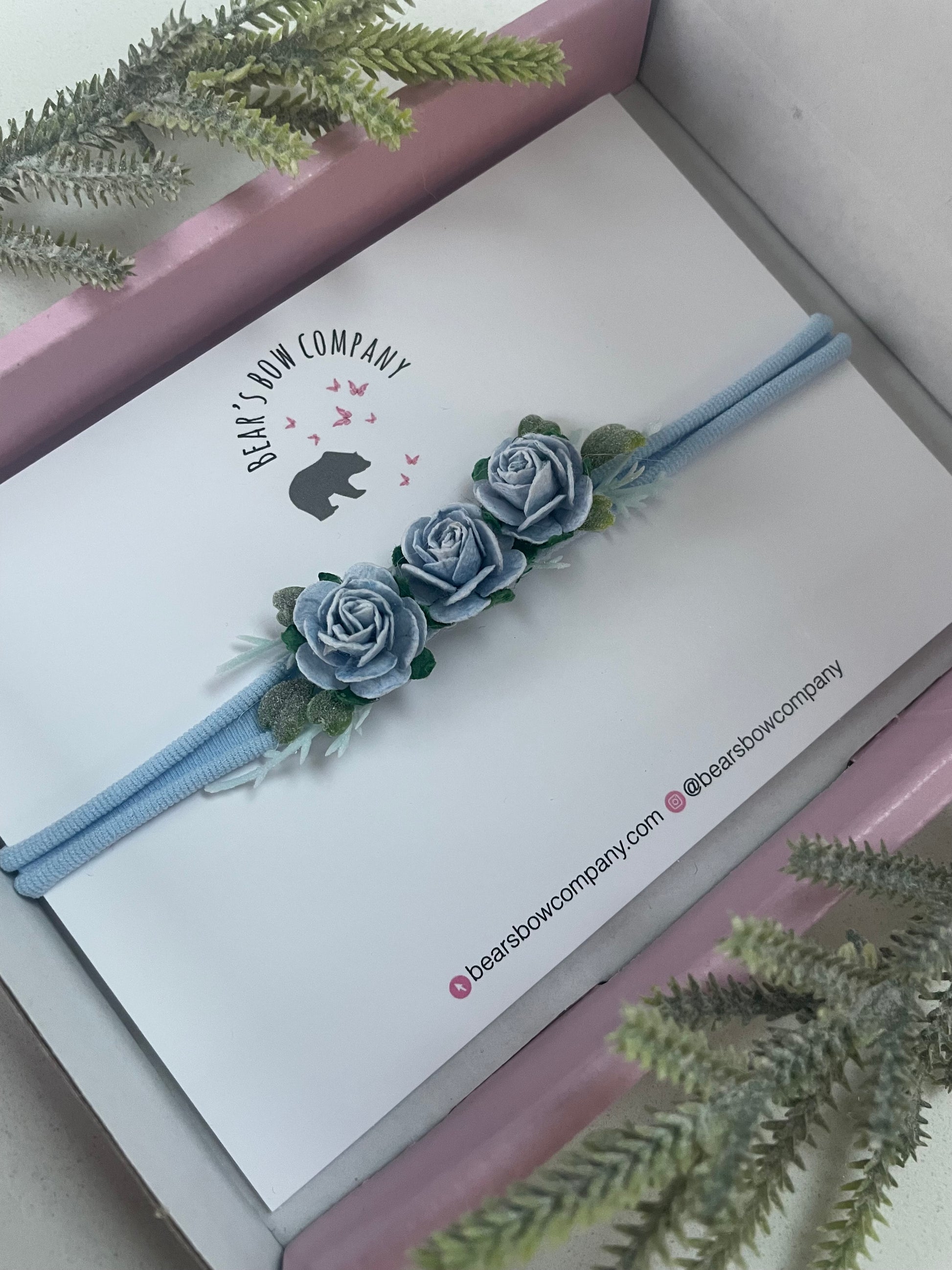 Baby Blue and Silver Blue Flower Headband, For Photoshoots, Weddings, Parties
