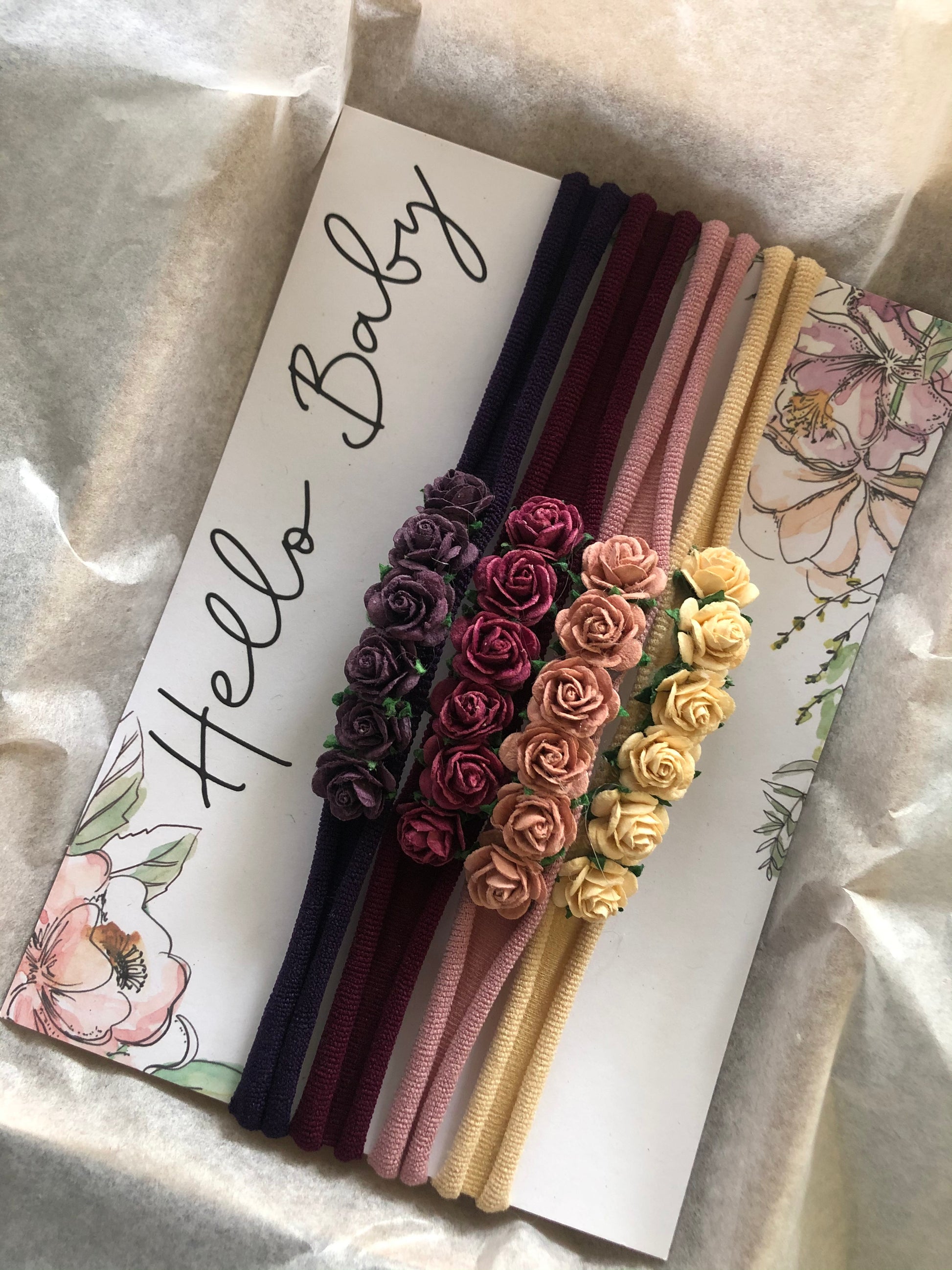 4 Autumn themed floral headbands (aubergine purple, burgundy, blush pink and deep ivory)