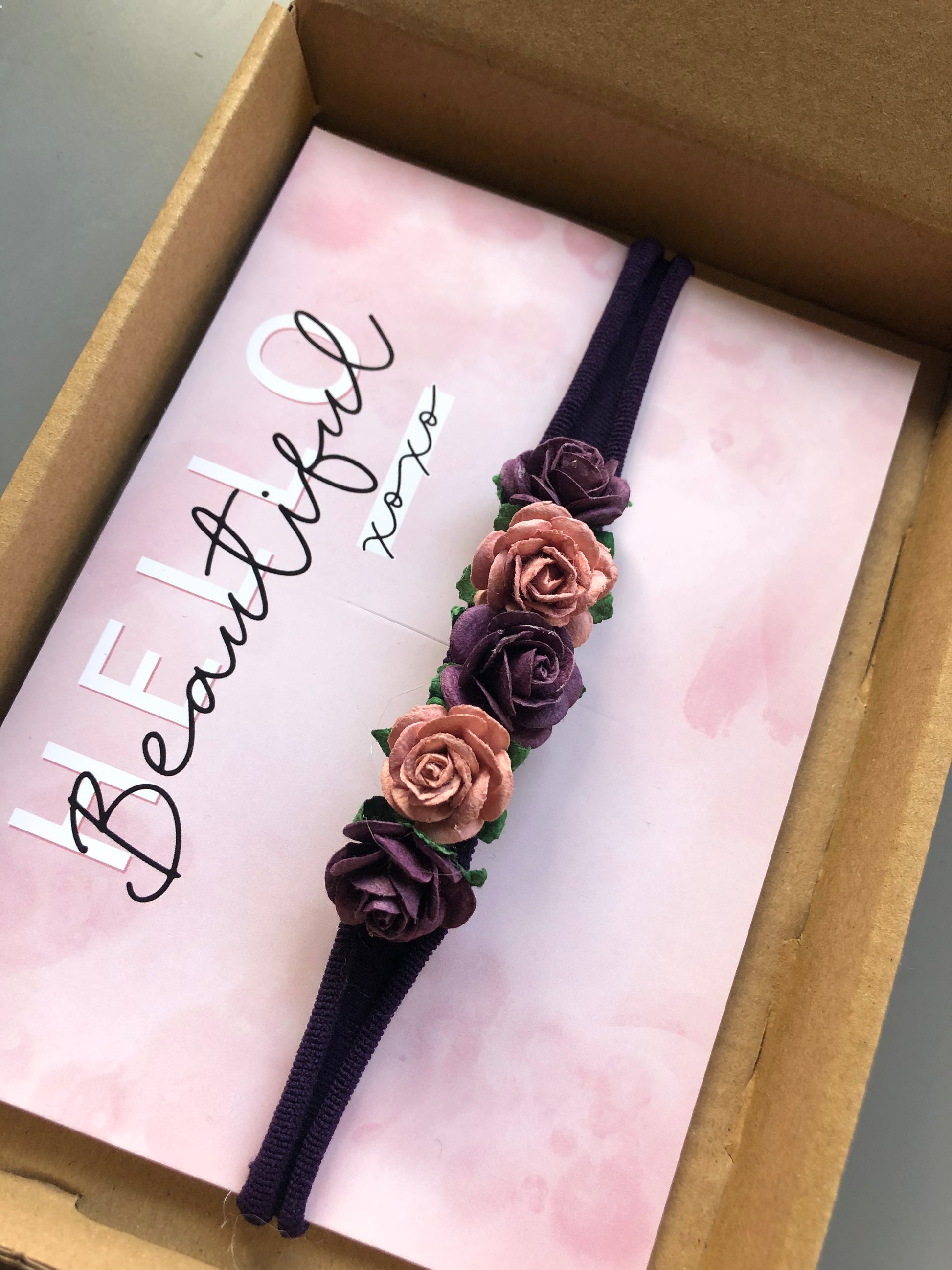 Purple and Blush Pink Flower Headband, For Photoshoots, Weddings, Parties