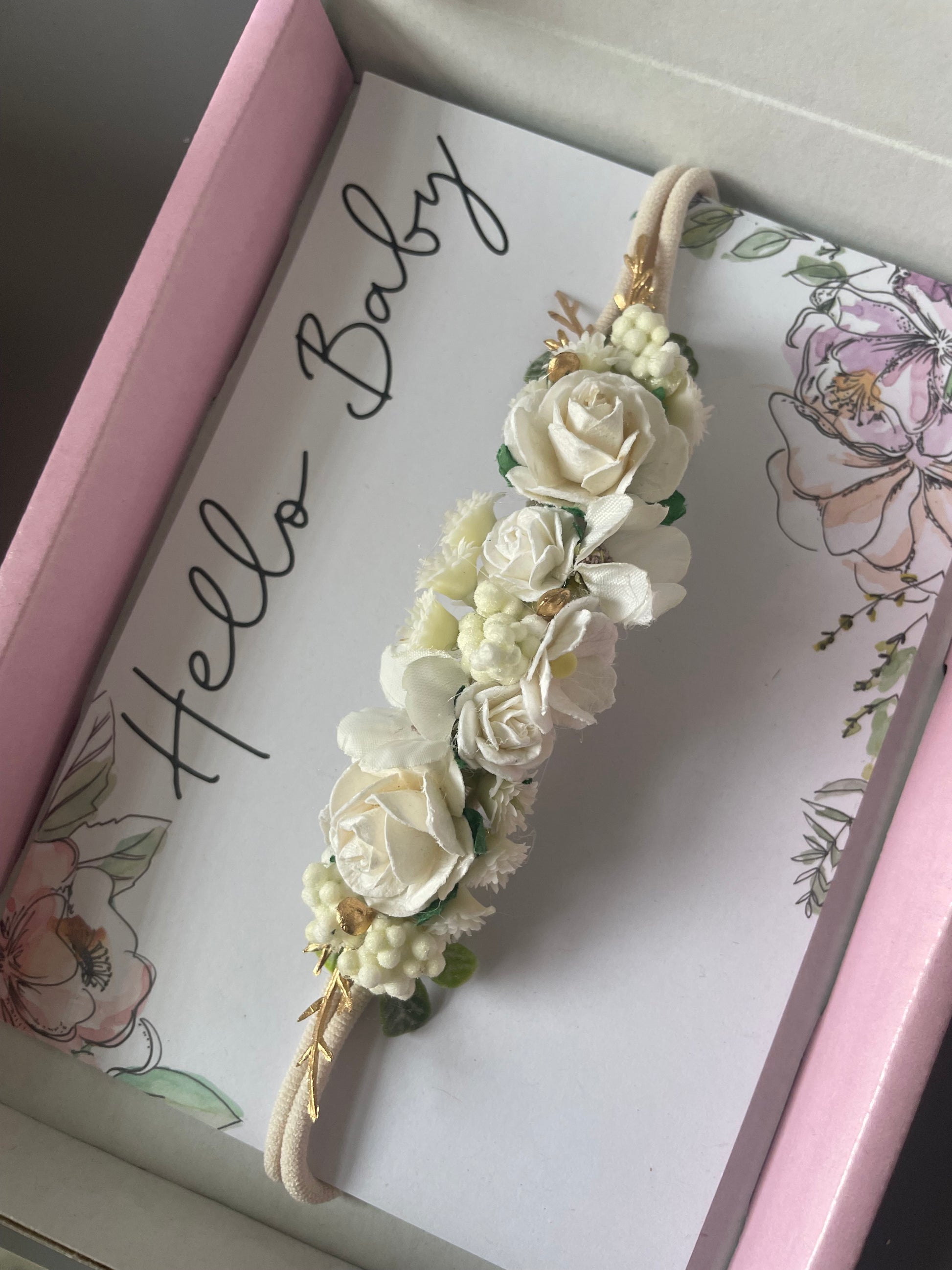 The mulberry flowers have been carefully mounted on to a matching nylon headband.